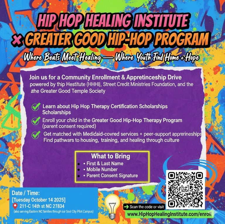 Explore our transformative programs, from Hip-Hop Therapy and Financial Literacy to Artist Development. Learn how we’re creating opportunities and changing lives.